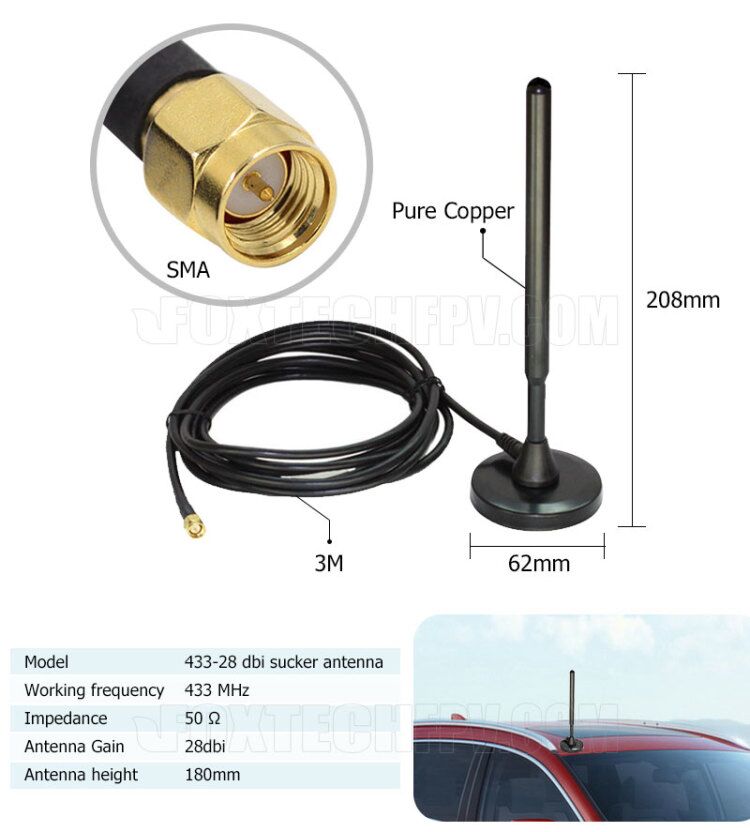 1x 433MHz 28dBi High Gain Sucker Antenna