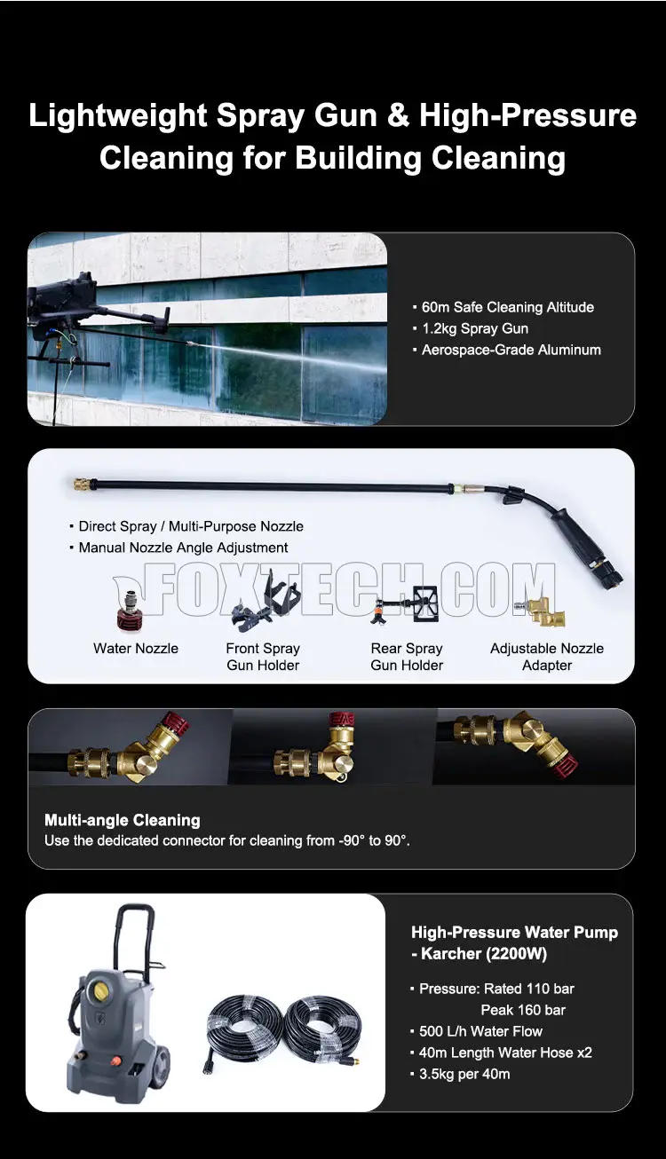 1. Maximum Cleaning Height: 60m. No after-sales support for issues arising above 60m.