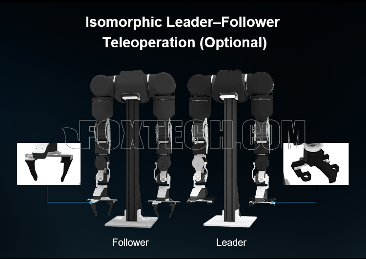 For labs simulating nuclear, chemical or biosafety workflows that require leader–follower teleoperation and remote manipulation. Operators control the dual arms to turn valves, toggle switches, pick up vials and transfer samples, studying teleoperation, safety strategies and contact-rich manipulation without exposing humans to hazardous environments.