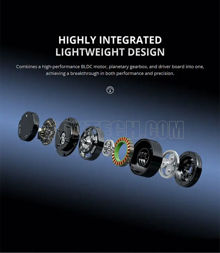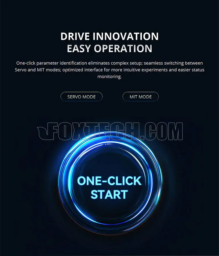 The integrated servo driver supports both servo and MIT control modes, achieving triple-loop control of position, speed, and acceleration. With adaptive PID tuning, the module provides plug-and-play precision without manual calibration—making it ideal for robot joints, exoskeletons, cobots, and other high-precision actuators.