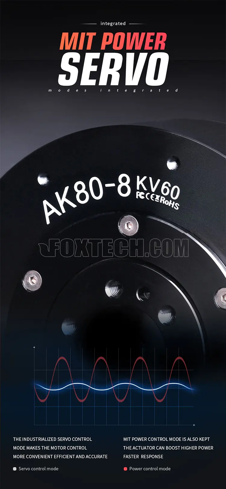 The CubeMars AK80-8 actuator combines a high-performance brushless DC motor, a self-developed planetary reducer, an encoder, and an integrated drive, delivering smooth operation with high torque. This portable drive solution offers both servo and MIT modes, allowing for synchronized control of position, velocity, and acceleration. By automatically adjusting PID settings, the AK80-8 simplifies operation and efficiently reaches the target without complexity.