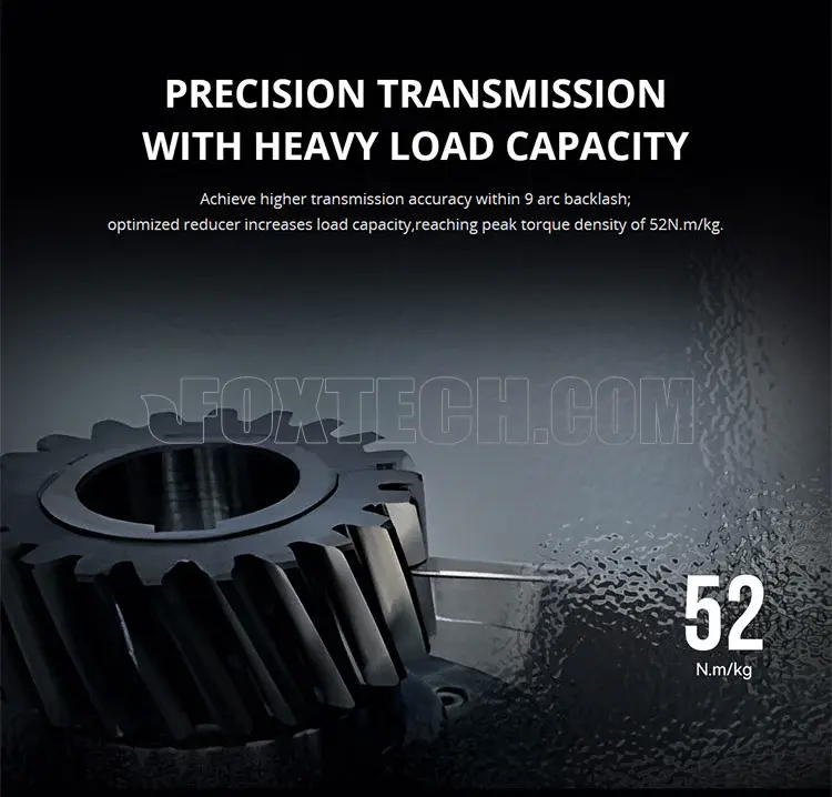 With optimized gearbox components and advanced manufacturing, the AKE80-8 achieves a backlash of only 9 arcminutes and a torque density of 52 N·m/kg, providing powerful yet lightweight operation for dynamic robotic applications.