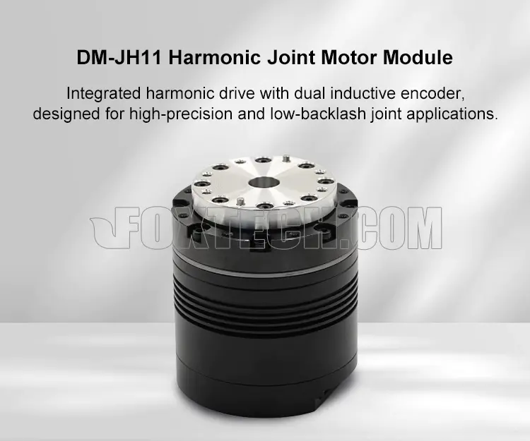 The DM-JH11 Harmonic Joint Motor Module is an integrated joint motor combining a harmonic drive and a dual inductive encoder, featuring low backlash, high precision, and excellent repeatability.