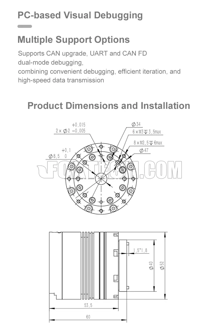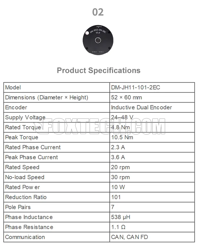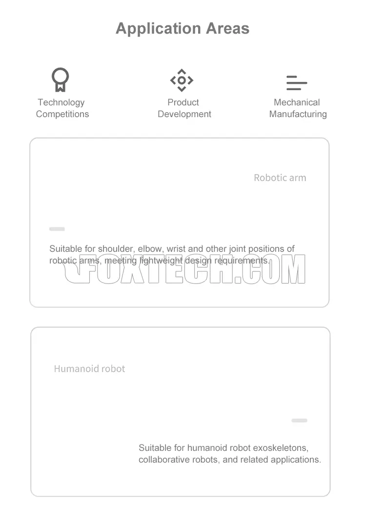 It is available with 51:1 and 101:1 reduction ratio options, making it suitable for robotic arms, humanoid robots, and other precision joint applications.