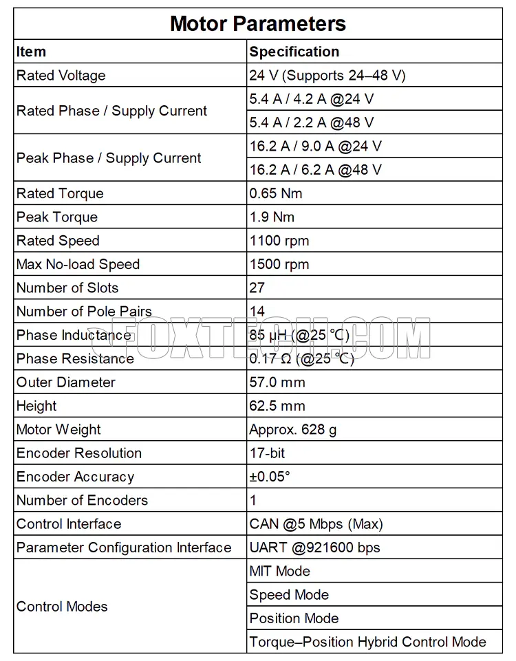 With support for CAN FD and CANopen communication, multiple control modes including MIT hybrid control, and a lightweight integrated structure, the DM5730 is suitable for applications requiring precise position, speed, and torque control in limited installation spaces.