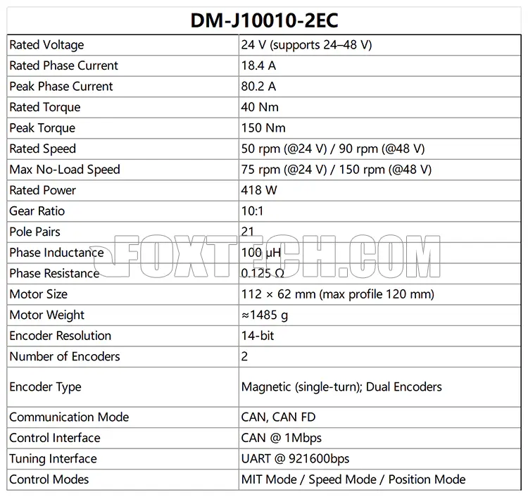 DM-J10010-2EC (48V) MIT-Driven Brushless Servo Joint Motor with Dual Encoders & Gear Reduction for Robotic Arms Actuator for Robot