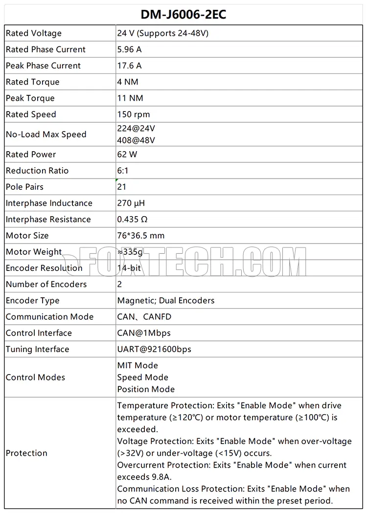 DM-J6006-2EC MIT-Driven Brushless Servo Joint Motor with Dual Encoders & Gear Reduction for Robotic Arms