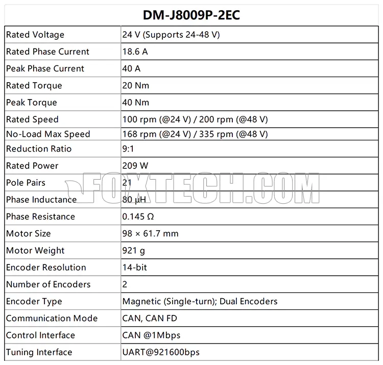 DM-J8009P-2EC MIT-Driven Brushless Servo Joint Motor with Dual Encoders for Robotic Arms Actuator for Robot