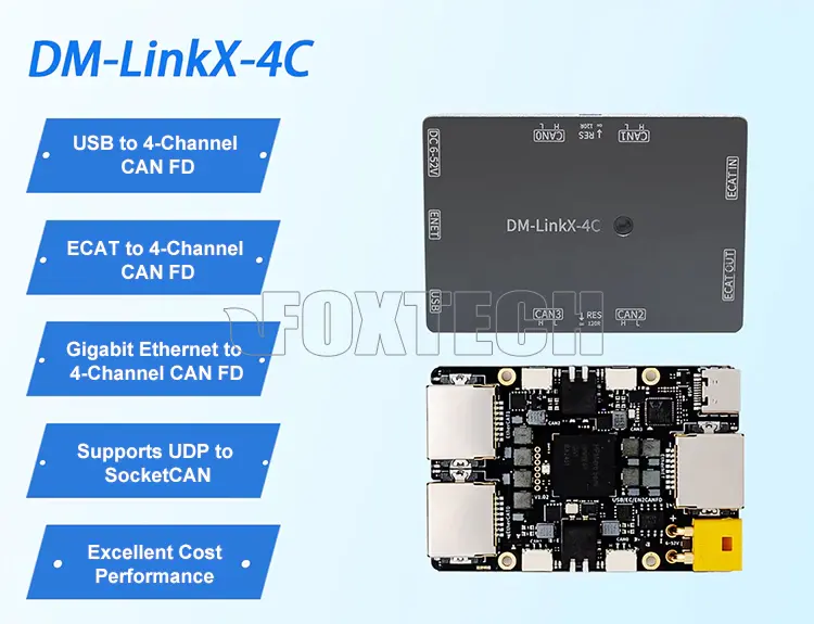 The DM-LinkX-4C is a high-performance, multi-interface CAN FD module designed for industrial communication, robotics, and automotive applications.