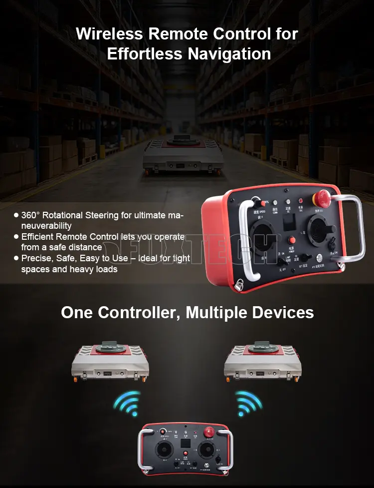 Remote Control: Wireless control allows operators to safely and efficiently navigate the skate tank, keeping them at a distance from heavy loads during operation.