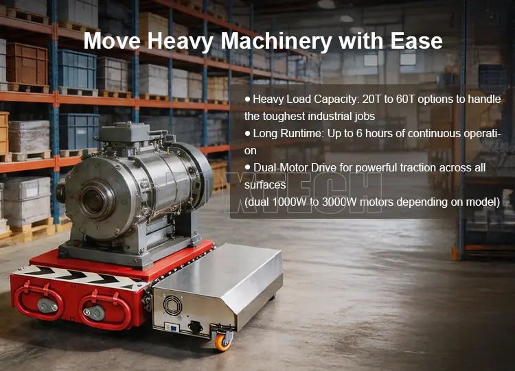 Whether you're dealing with smaller equipment or high-tonnage machinery, this electric load mover is built to perform.