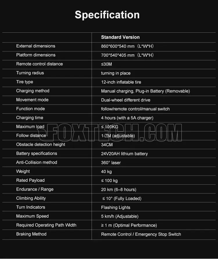 FOLO-100 PRO is a robust, heavy-duty cargo trolley engineered to transport loads of up to 100 kg with ease. Designed as an intelligent following robot, it is ideal for industrial, commercial, and personal applications.