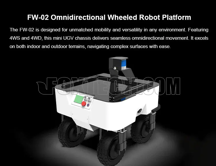 FW-02 Omnidirectional Wheeled Robot Platform-4WS/ 4WD Mini UGV Robot Chassis with Multi-Line LiDAR