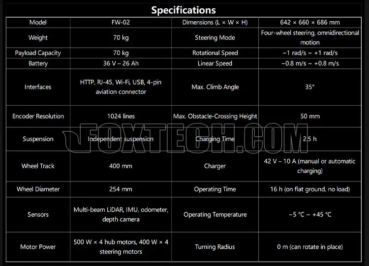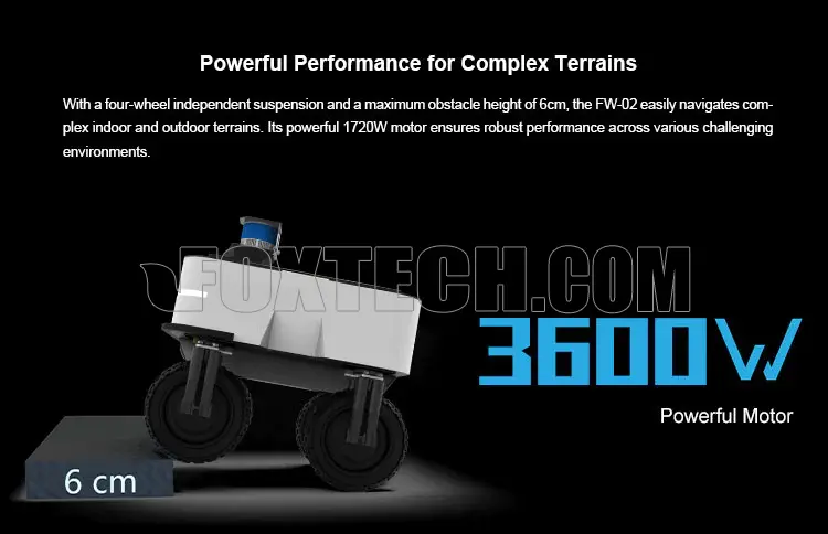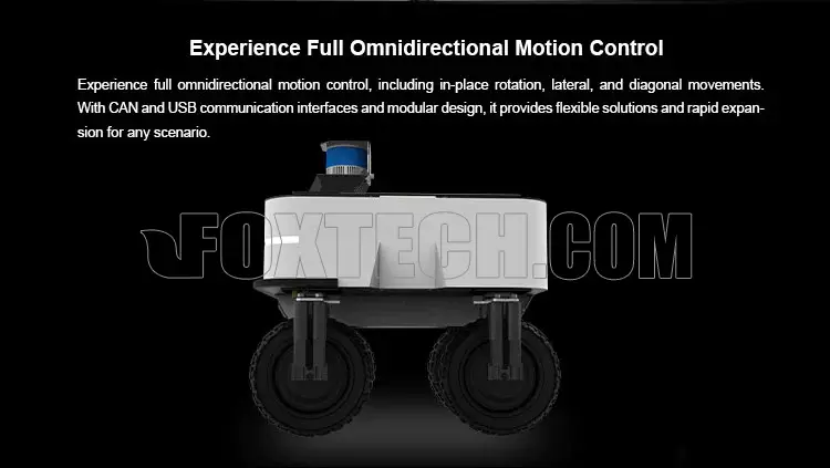 The FW-02 Omnidirectional Wheeled Robot Platform is designed for unmatched mobility and versatility in any environment. Featuring four-wheel steering (4WS) and four-wheel drive (4WD), this mini unmanned ground vehicle (UGV) chassis delivers seamless omnidirectional movement, including on-the-spot rotation, lateral and diagonal shifts. With robust independent suspension on each wheel, it excels on both indoor and outdoor terrains, navigating complex surfaces with ease.