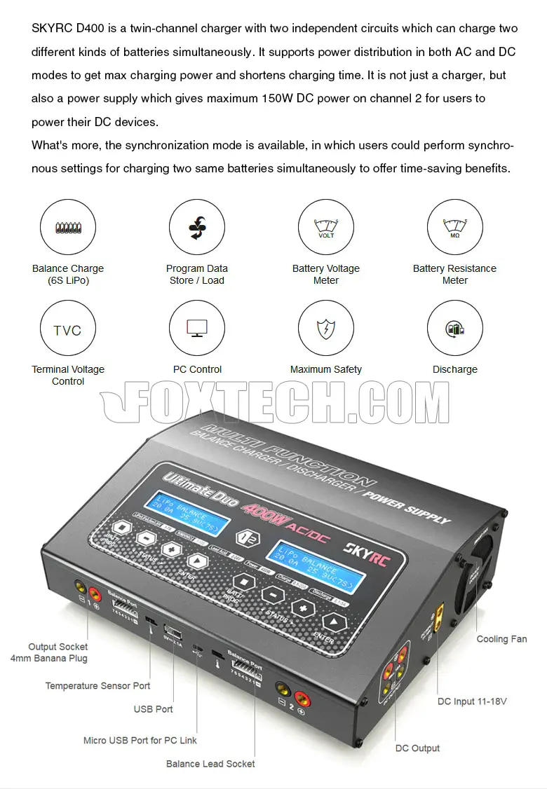 SKYRC Ultimate Duo 400W Dual-channel AC/DC Balance Charger