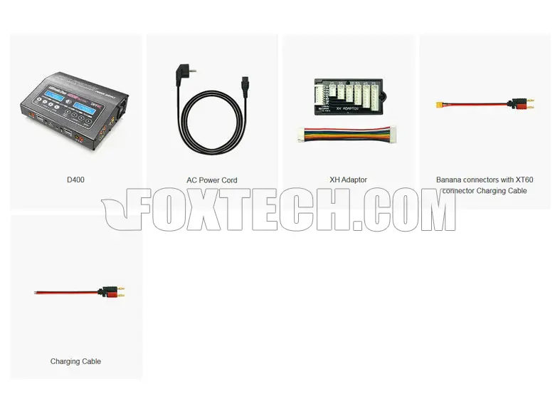 Note: There are four types of plugs to choose from, UK, US, EU, AU, etc. If you need other plug types, please contact us by live chat or email us at support1@foxtechfpv.com.