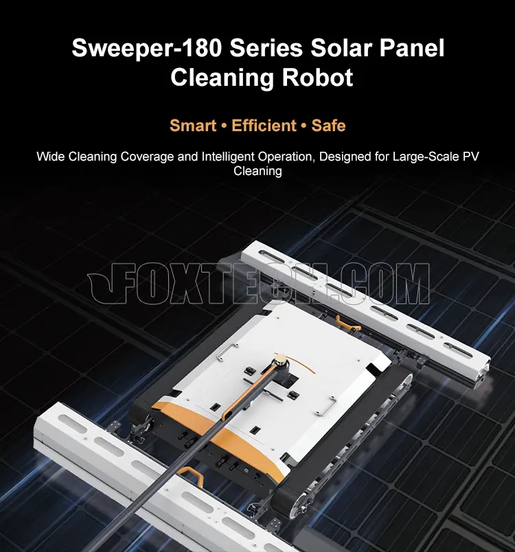 The Sweeper-180 / Sweeper-180 PRO is an advanced solar panel cleaning robot built for large-scale photovoltaic (PV) installations, offering wider cleaning coverage, stronger power, and higher operational efficiency.