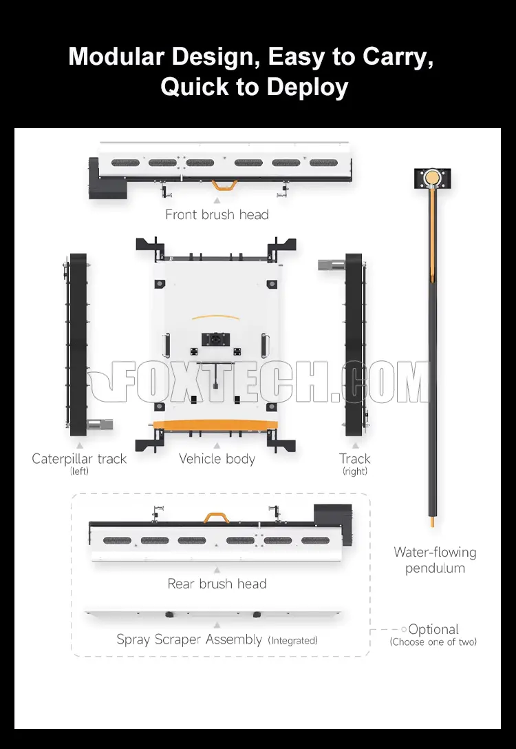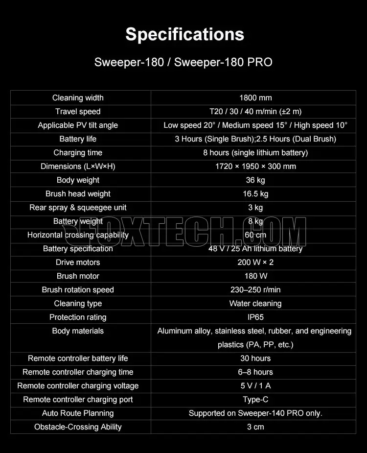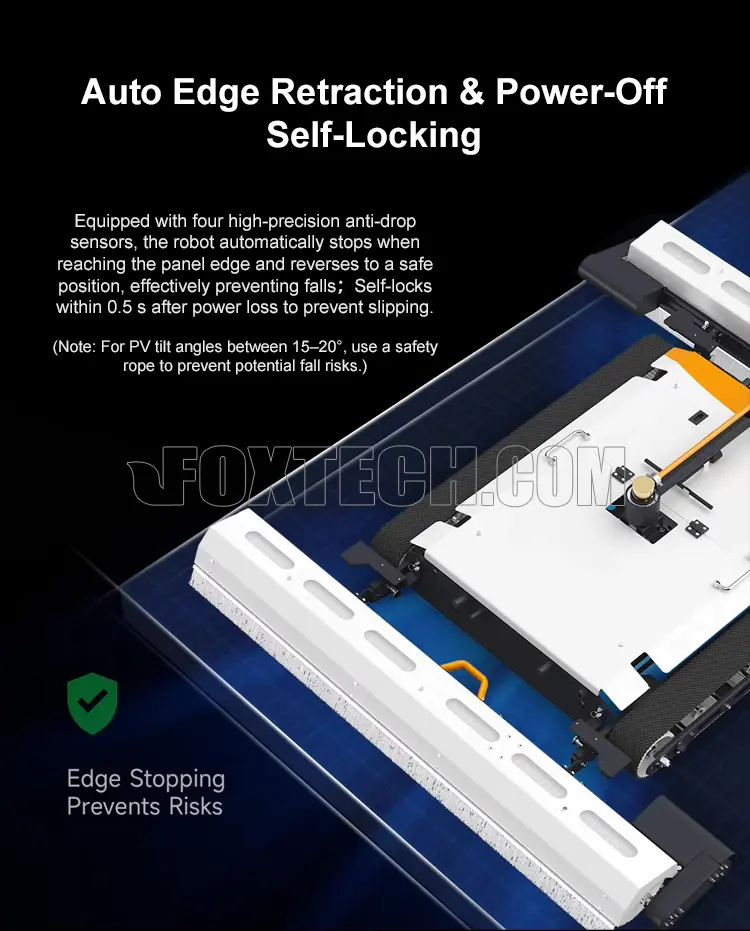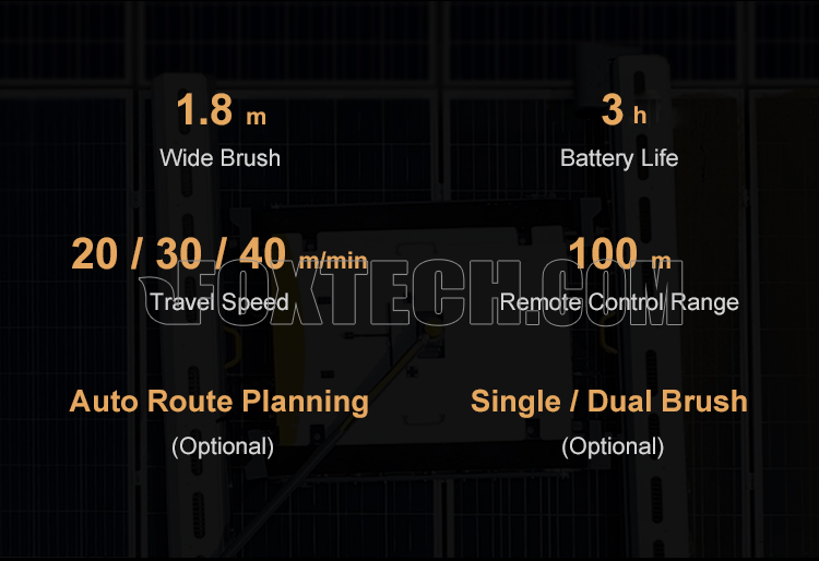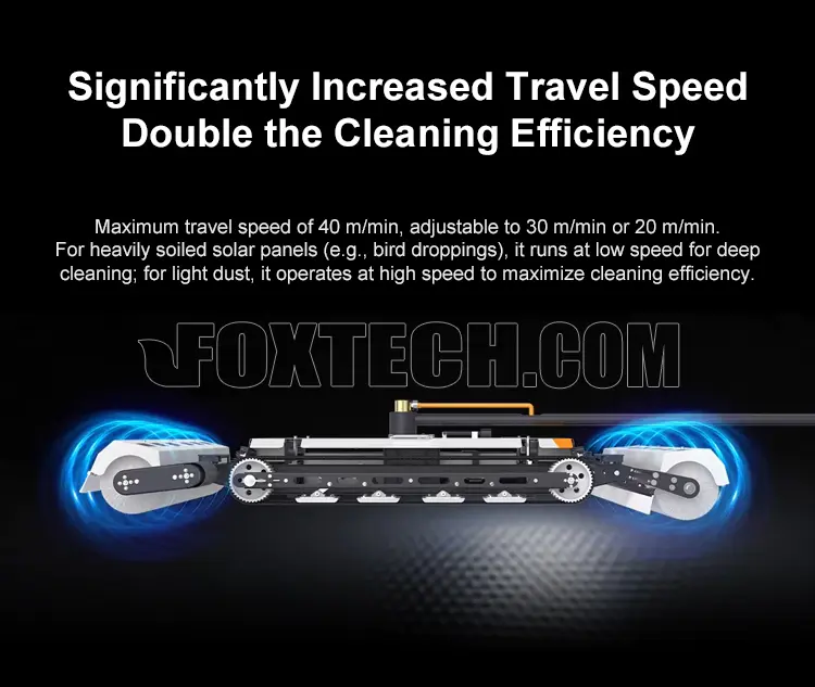 With its 1.8-meter cleaning width, enhanced drive system, and intelligent control features, it ensures thorough cleaning of extensive solar arrays while minimizing downtime and labor costs.