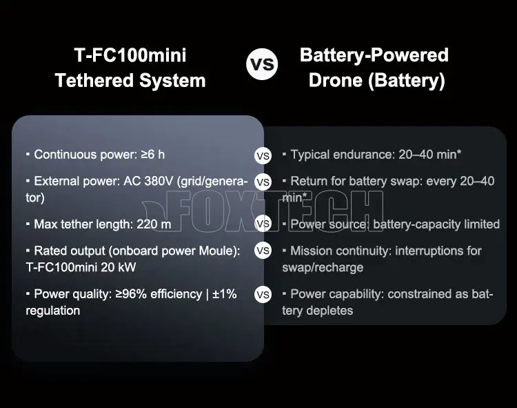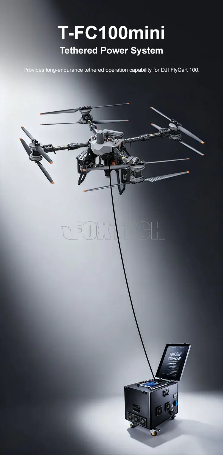 T-FC100 MINI Tethered Power Solution for DJI FlyCart 100 | 6+ Hours Continuous Power for Aerial Monitoring, Security, Nighttime Operations