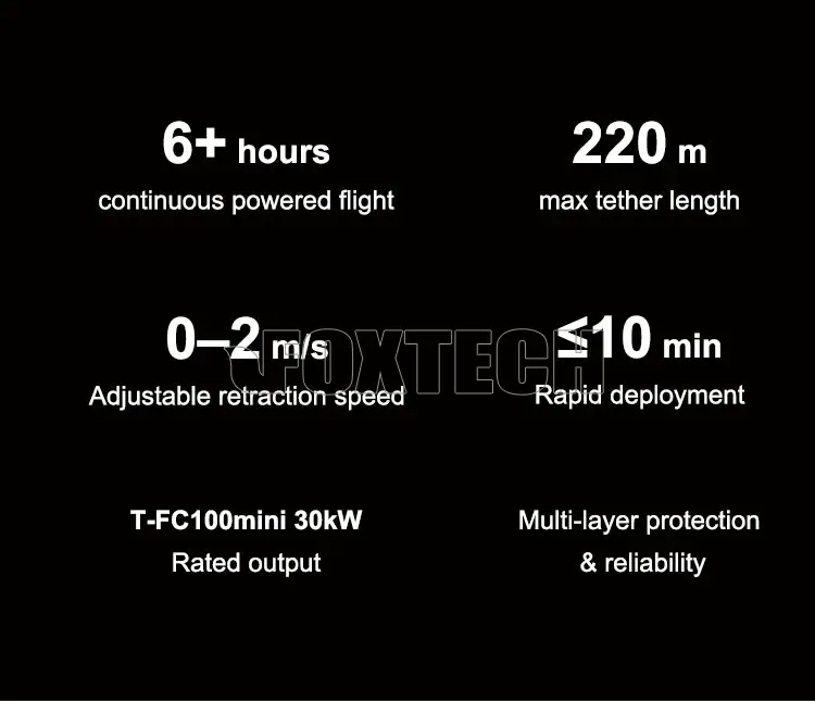 - HIGH-POWER OUTPUT: 30 kW rated tether station output | 20 kW rated onboard power