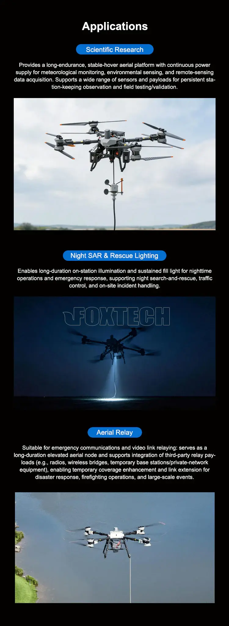 - ≥ 6 HOURS CONTINUOUS POWERED OPERATION for persistent hovering and on-station missions