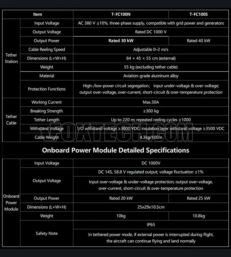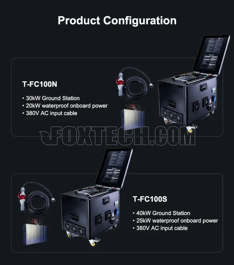 T-FC100N: 30 kW rated tether station output | 20 kW rated onboard power