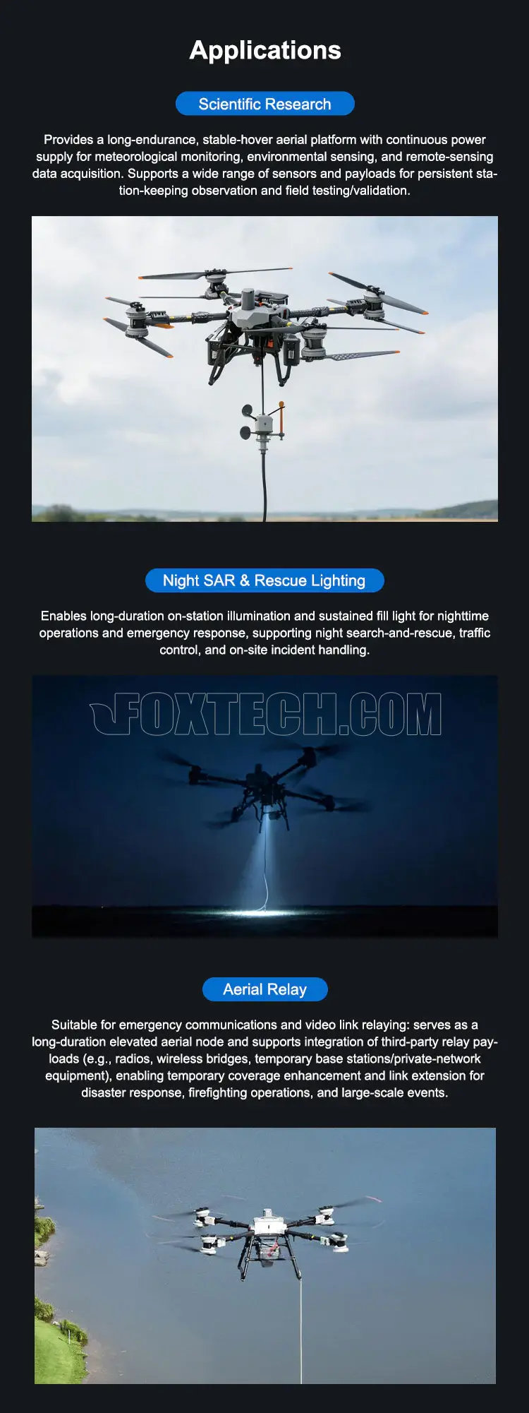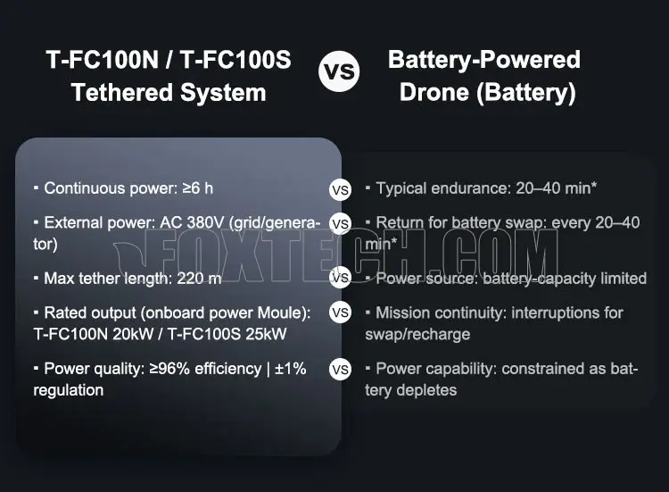 - ≥6 hours continuous powered operation for persistent hovering and on-station missions