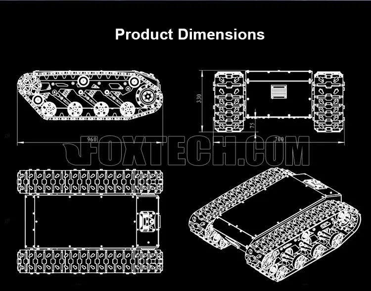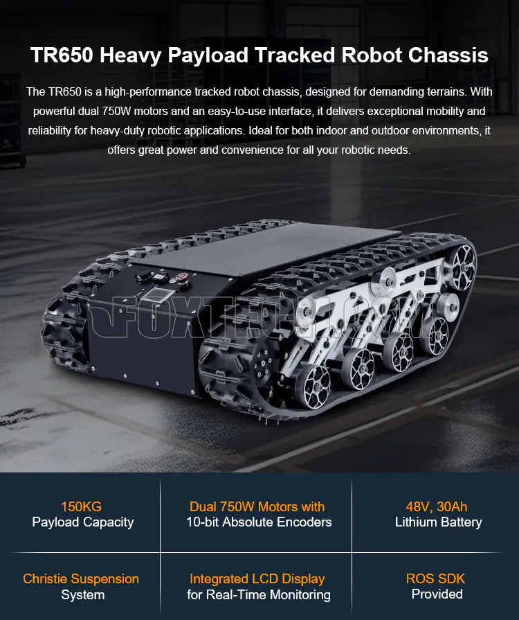 TR650 150KG Payload 2×750W All Terrain ROS/Serial Crawler Tracked Chassis