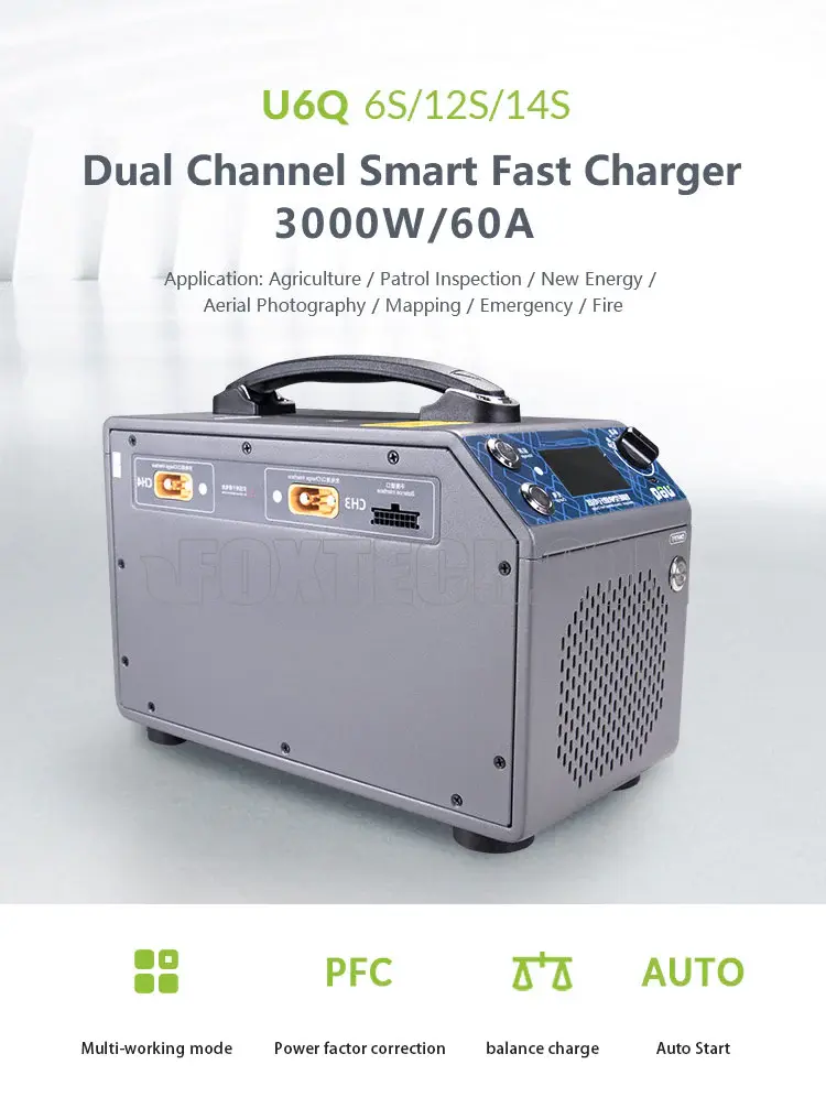 U6Q 3000W 60A Four Channel Smart Fast Charger 6S/12S/14S