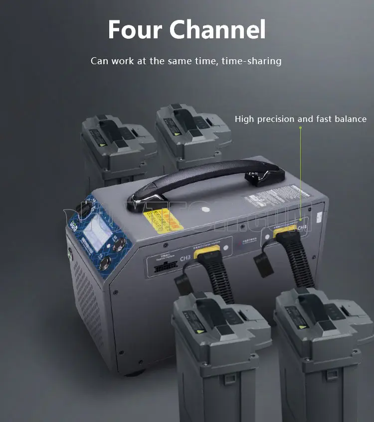 Supports four channels working simultaneously or in time-sharing mode for flexible multi-battery charging.