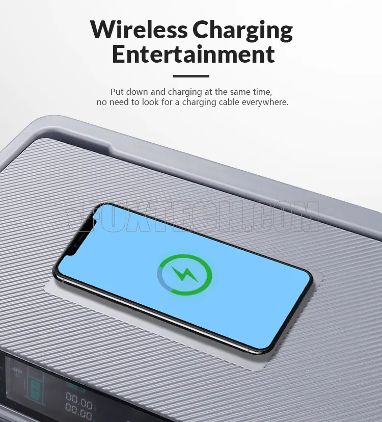 Wireless phone charging (top panel) – drop your phone to charge while you work