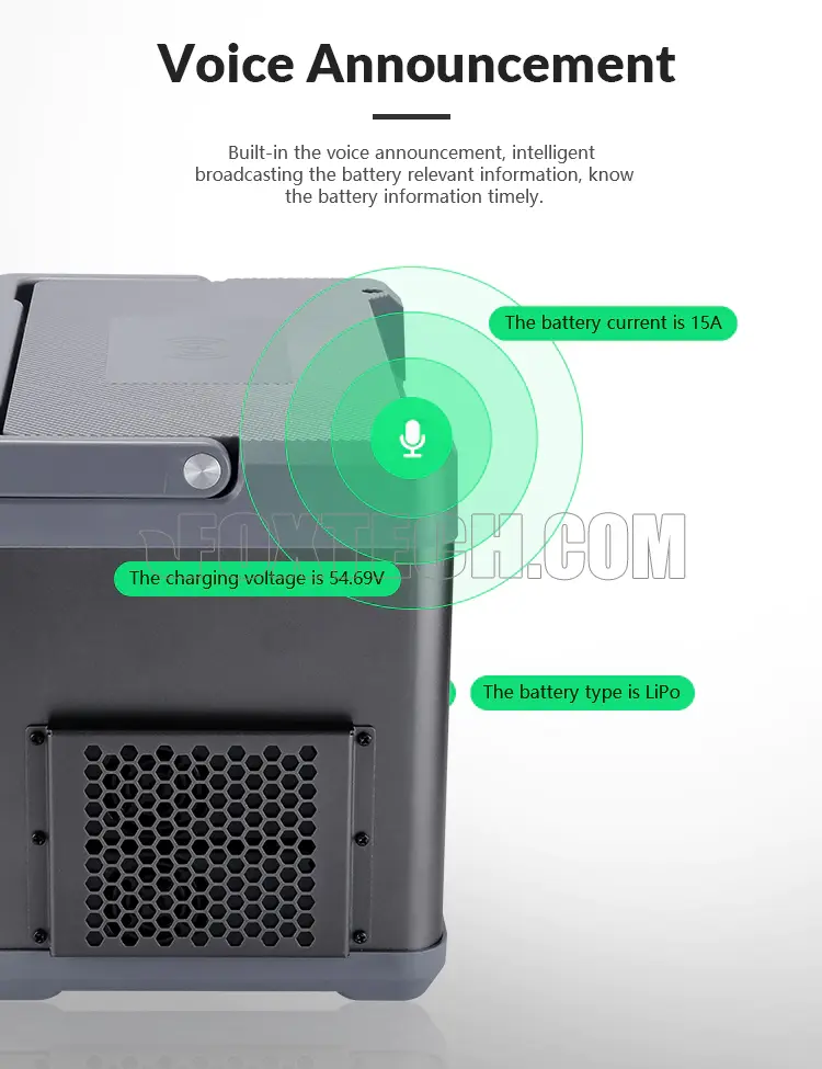 Voice announcements – audible prompts for voltage, current, battery type, and status