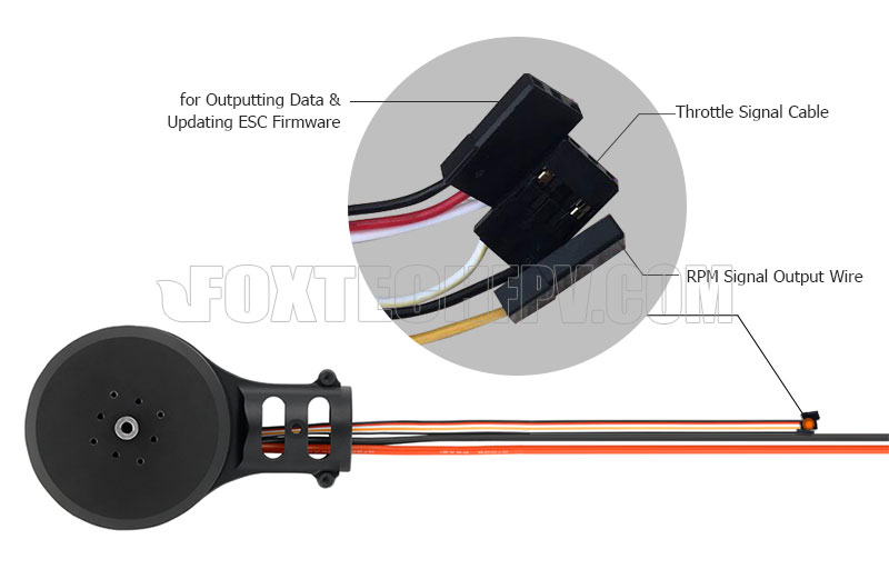 The (Black/Red/White) tri-color cable is for outputting data & updating ESC firmware;